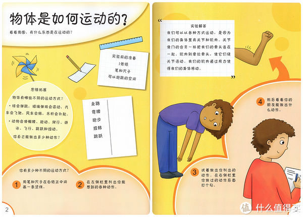 第一个实验是研究自身的运动,很容易就把小朋友们带入,了解自己身体的运动,是通过肌肉收缩的力来完成的……轻松直观的给小朋友们引入力的概念。