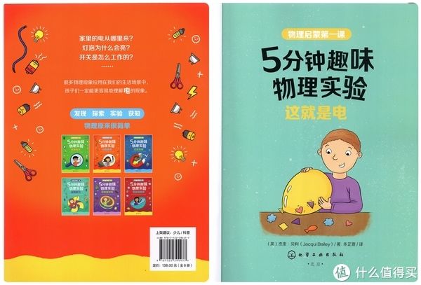 ? ? ?总体上讲,这套物理启蒙还是非常不错的,个人感觉适合的年龄段应该是4-12岁,从光、电、磁、力、材料和固体六个方面对身边的物理现象进行了阐述,每类除了介绍,还有相应的小实验进行实践。